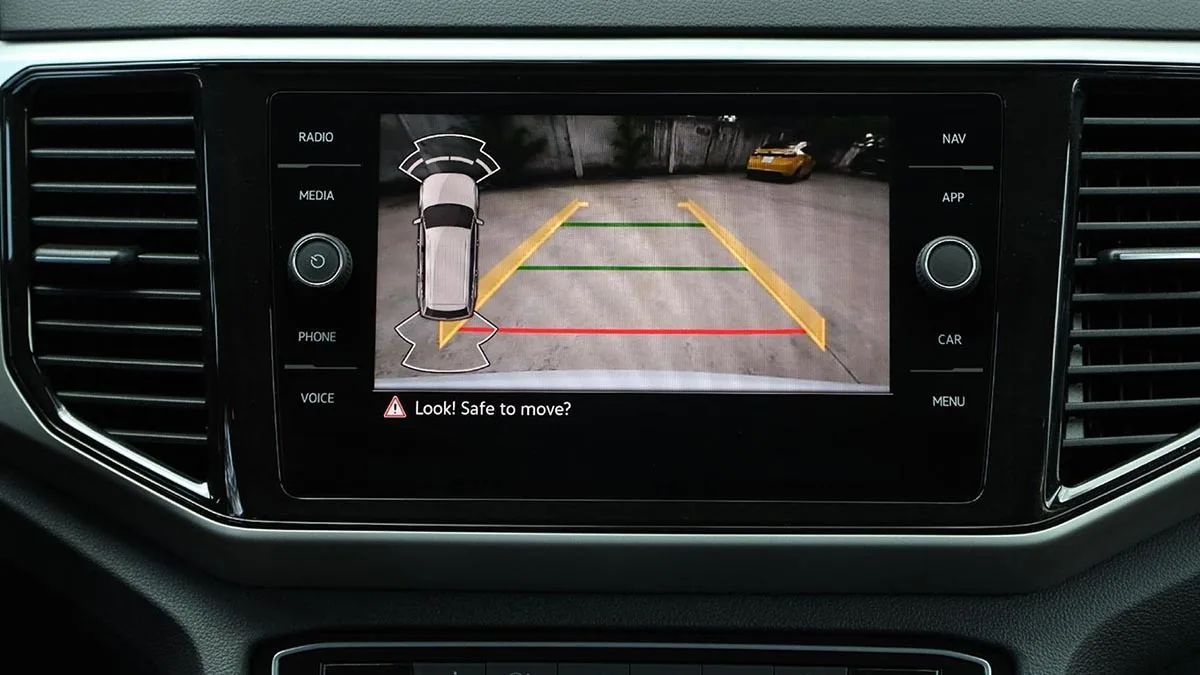 Camera lùi góc rộng: Đưa xe vào những chỗ đậu xe khó khăn nhất một cách nhanh chóng và dễ dàng. Các hướng dẫn hiển thị rõ ràng bằng vạch trên màn hình kết hợp âm thanh cảnh bá