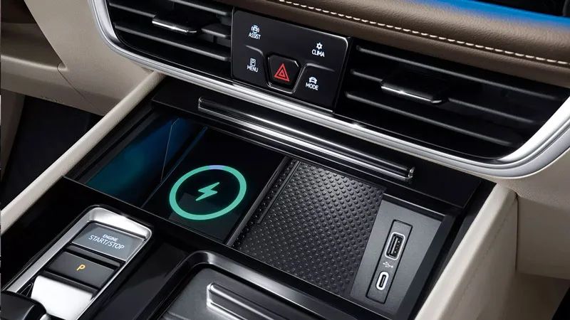 Chức năng sạc điện thoại không dây.Điều hòa nhiệt độ tự động, 3 vùng, lọc gió PM2.5, điều chỉnh cảm ứng.