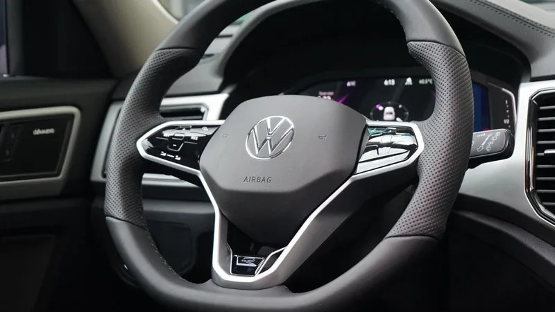 Volkswagen Teramont Limited Edition vẫn giữ nguyên thiết kế nội thất nhưng được bổ sung trang bị tiện nghi. Vô lăng trên Teramont Limited Edition được nâng cấp lên chất liệu da Nappa và thay đổi dàn nút bấm sang loại đen bóng có khả năng cảm ứng. Mặc dù xuất hiện logo “R” của bản thể thao nhưng thiết kế của vô lăng này không có sự khác biệt nào so với bản thường.